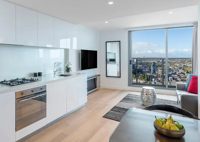 Imagine Marco Aparthotel de Melbourne oferece quartos com varanda e cozinha totalmente equipada, com controle de temperatura, juntamente com Wi-Fi gratuito e TV de tela plana com canais via satélite. Chaleira elétrica, frigorífico grande e congelador são incluidos em uma cozinha completa para auto-serviço neste hotel. As casas de banho incluem casa de banho separada e chuveiro, bem como secador de cabelo e lençóis de banho. Tem uma vista para a cidade.